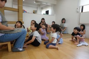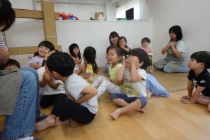 トントントン何の音?遊びをしました♬鬼役が「トントントン」と言うと、逃げる役が「何の音?」と聞きます。鬼役が「風の音!」や「お料理の音!」「〇〇ちゃんが走る音!」などいろんなパターンで答えます😊そして、「おばけだぞ~!!!」👻で鬼ごっこが始まる遊びです🎵「おばけだぞ~!」じゃない他の音の時は「あ~よかった!!!」で次を待ちます😊