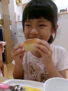 バインミーを大きなお口でパクッ♡美味しく食べていました🤤