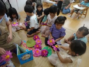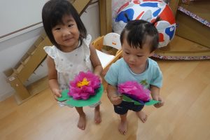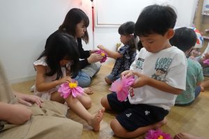 お花紙を1枚1枚広げて咲かせていきます🌼
