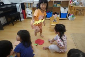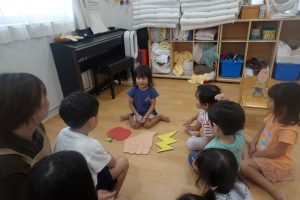 簡単なリズムに合わせて、やりとりを楽しむ‘落ちた落ちた‘ゲームをしました♬