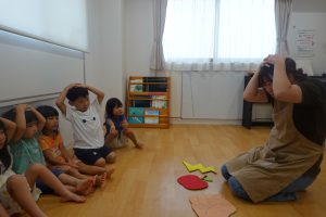「りんご」「かみなり」「げんこつ」の3つの落ちる物に対して決められたポーズを覚え遊びます♬