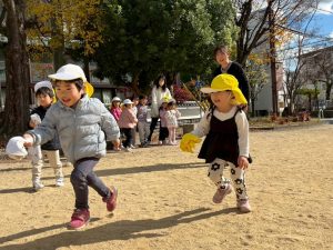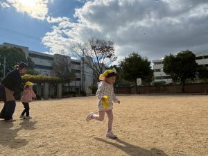 次に「リレーしたい!」のリクエストが♬大きい子も小さい子もみんなでリレー対決をして盛り上がりました😊バトンを持って次のお友だちにバトンを渡すということを忘れずに走ります!!