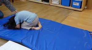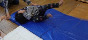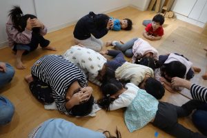 実際に揺れると、頭を押さえることを忘れてしまったり、すぐにしゃがむことすらできずに、立とうとするようで思ったように動けませんでした。揺れたらすぐに、頭を守り、ダンゴムシポーズをすることが大切なことを身をもって体験できたようです。