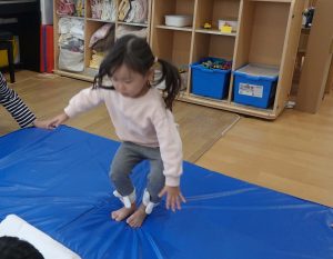 地震が起こったらまず、どうしたらいいのか聞くと、「あたまをおさえる!」、「だんごむしのポーズ!」とすぐに答えてくれました。