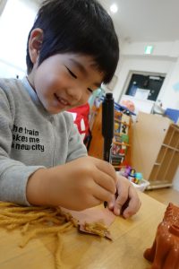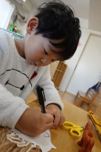 大きいお子様は、たてがみの長さをハサミで微調整しながら、かっこいいお馬さんを作っていました🐴気分は美容師さん✂