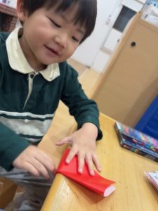 大きいお友だちは難しい折り方の獅子舞や鏡餅を選んでいました😊「おねえさんだから、むずかしいのしたい!!」と意気込んでいましたよ!