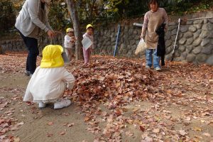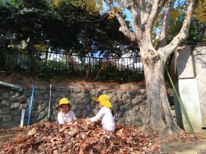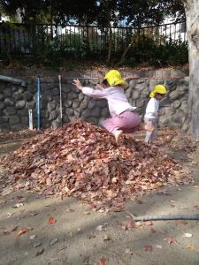 みんなで落ち葉をせっせと集めていくと、どんどん高くなりました🍂