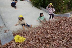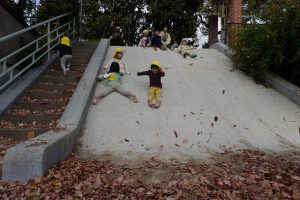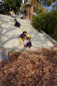 大きなすべり台の下にも落ち葉がたくさん!!